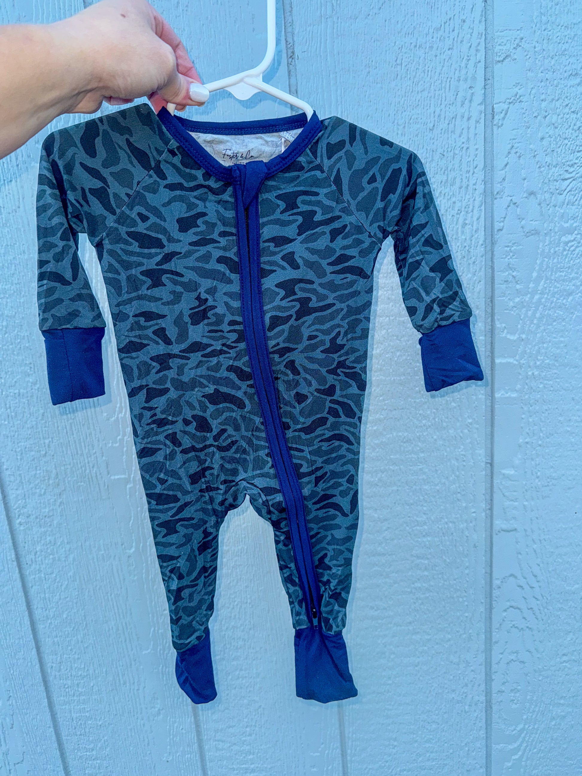 Stay comfortable and stylish with Black & Grey Introducing the Black & Grey Camo Bamboo Zippy, featuring a unique hint of blue tint in the background. Made from 210 gsm bamboo, our soft, stretchy, and breathable pajamas will grow with your little one, running a size bigger for longer wear. Enjoy features like fold over mittens and footies, an easy two-way zipper for diaper changes, and no scratchy tags.